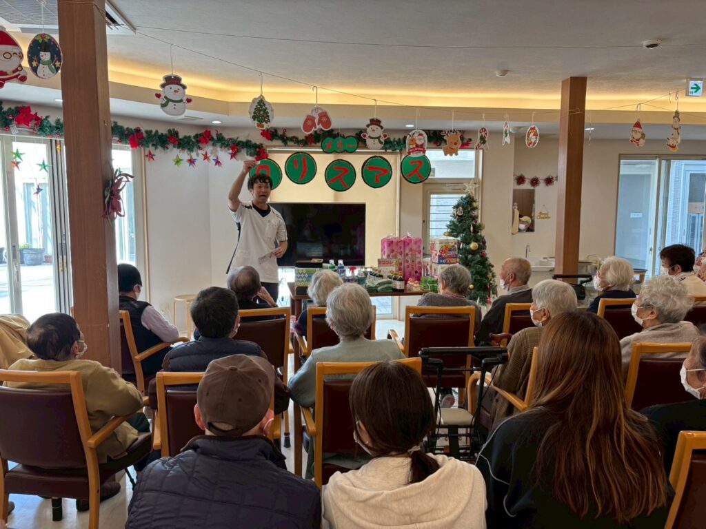 会では、日本舞踊の披露や大抽選会を行い、また、枕崎市の菓子工房いづみや様のクリスマスケーキを皆さまに召し上がっていただきました。終始、笑顔あふれる和やかなひとときとなりました。