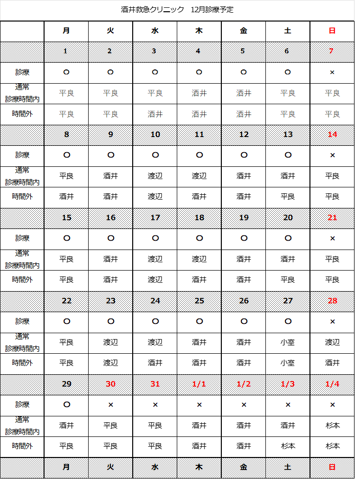 12月診療予定